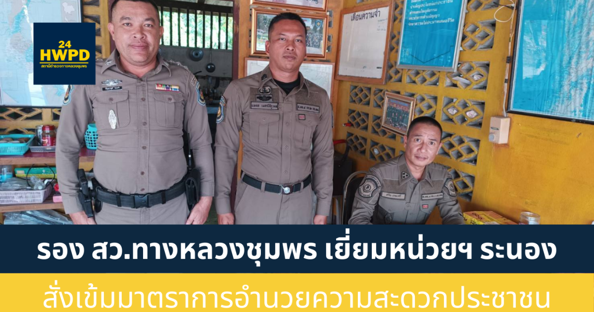 วันที่ 24/02/2567 เวลา 16.10 น. ร.ต.อ.ชรัณ ปาณะศรี รอง.สว.ส.ทล.4 ร.ต.อ.ปัญญาวุฒิ ทองคำ รอง.สว.ส.ทล.4 ได้เดินทางไปตรวจเยี่ยมหน่วยบริการประชาชนตำรวจทางหลวงระนอง เพื่อมอบแนวทางการปฏิบัติหน้าที่และกำชับการให้บริการประชาชน