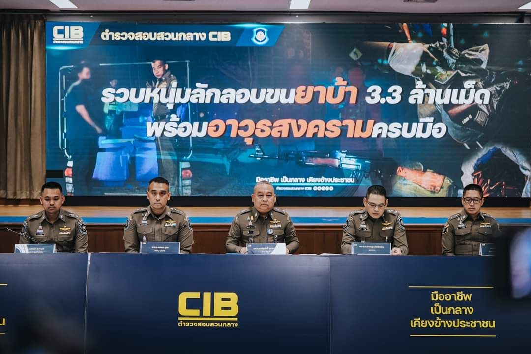 ตำรวจสอบสวนกลาง (CIB) รวบหนุ่มลักลอบขนยาบ้า 3.3 ล้านเม็ด พร้อมอาวุธสงครามและกระสุนครบมือ