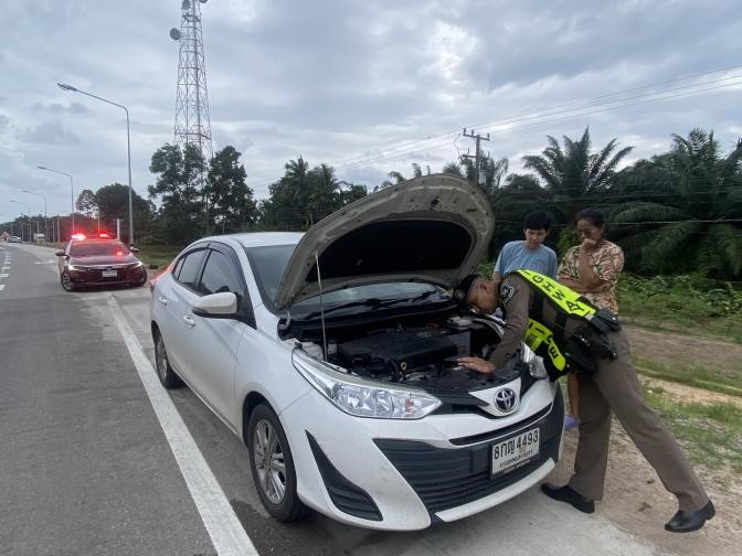 “ตำรวจทางหลวงหลังสวน ประสานกู้ภัยช่วยซ่อมรถยนต์ที่ขัดข้องบนถนนสาย 41”