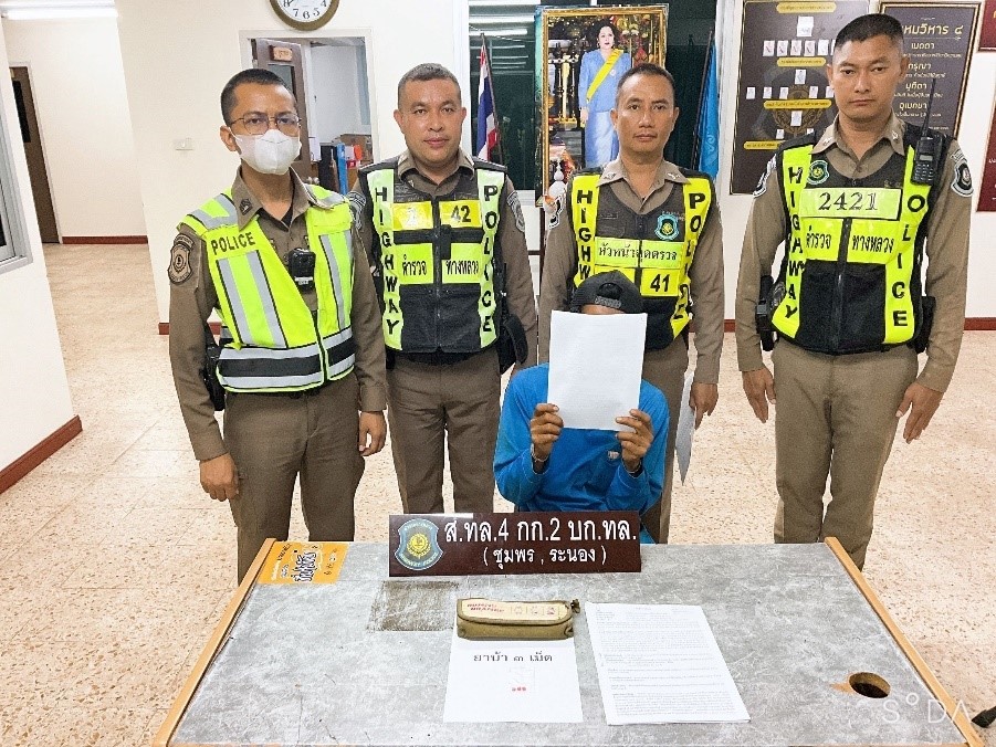 ตำรวจทางหลวงชุมพร จับกุมยาเสพติดให้โทษชนิดร้ายแรงประเภท 1 รวมทั้งหมด 160 เม็ด